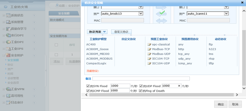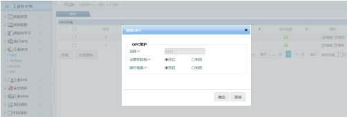 除通用防火墙基本防护功能外,着重实现对MES系统与工控系统的OPC协议的动态端口防护及完整性检查、碎片检查等细粒度防护,并可以深度解析协议,做到深入item值的防护。