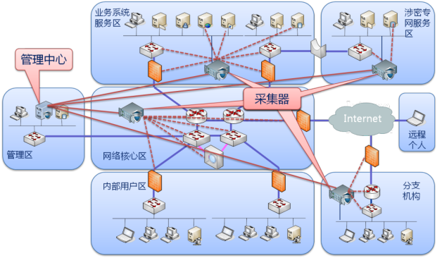 泰合安全管理平台(信息安全运营中心系统-TSOC)是一个以IT资产为基础,以业务信息系统为核心,以客户体验为指引,从监控、审计、风险和运维四个维度建立起来的一套可度量的统一业务支撑平台,使得各种用户能够对业务信息系统进行可用性与性能的监控、配置与事件的分析审计预警、风险与态势的度量与评估、安全运维流程的标准化、例行化和常态化,实现业务信息系统的持续安全运营。启明星辰新一代安全管理平台SOC3.0以大数据分析架构为支撑,以业务安全为导向,构建起以数据为核心的安全管理体系,强调更加主动、智能地对企业和组织的网络安全进行管理和运营。实现对海量安全信息进行全面的收集、整理、分析、审计,并借助智能化的分析手段提取出关键的安全事件;对客户复杂的IT系统从业务的角度进行全方位的可用性及性能监测、故障定位和告警;主动地进行事前安全管理,在攻击发生之前就获悉网络的安全态势;对客户重要业务系统进行量化的风险评估;借助量化的分析模型实现全网的安全态势感知;符合并体现了等级保护和信息安全管理体系的要求。