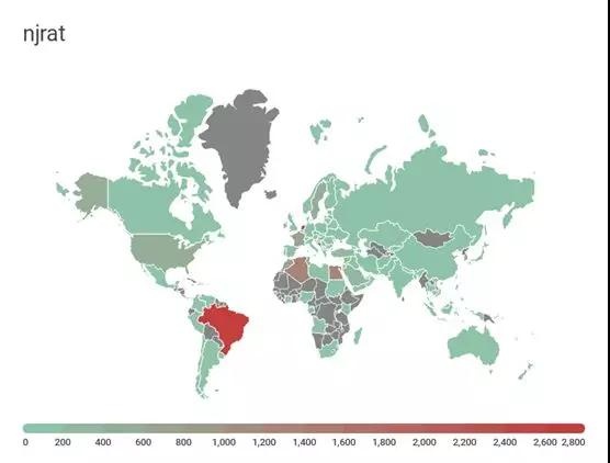 2017 H2 – 2018H1,Njrat的C&C服务器的分布