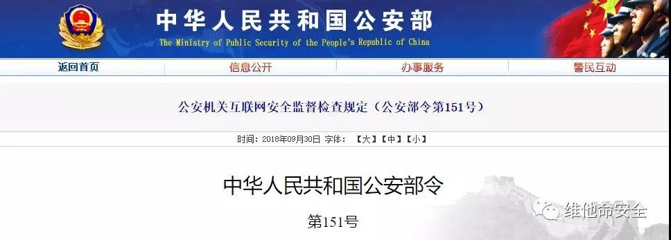 《公安机关互联网安全监督检查规定》已经于2018年9月5日公安部部长办公会议通过,自2018年11月1日起施行。本规定适用于公安机关依法对互联网服务提供者和联网使用单位履行法律、行政法规规定的网络安全义务情况进行的安全监督检查。互联网安全监督检查工作由县级以上地方人民政府公安机关网络安全保卫部门组织实施。公安机关对互联网安全监督检查工作中发现的可能危害国家安全、公共安全、社会秩序的网络安全风险,应当及时通报有关主管部门和单位。