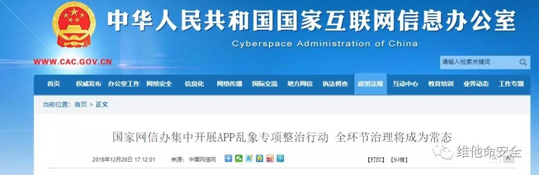 近期,国家网信办会同有关部门针对网民反映强烈的违法违规、低俗不良移动应用程序(APP)乱象,集中开展清理整治专项行动,依法关停下架“成人约聊”“两性私密圈”“澳门金沙”“夜色的寂寞”“全民射水果”等3469款涉黄涉赌、恶意扣费、窃取隐私、诱骗诈骗、违规游戏、不良学习类APP。据统计,目前在国内应用商店上架的APP已经超过480万款,涵盖了人民生活的各个方面。近日,国家网信办集体约谈28家应用商店、社交平台和云服务企业,对其履行主体责任不力、客观上为违法违规APP提供接入通道、扩散渠道提出警告,要求立即对各自平台进行全面排查,认真开展自查自纠,积极主动参与违法违规APP乱象专项整治行动,清理应用商店,屏蔽恶意链接,清查接入服务。