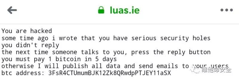 爱尔兰首都都柏林的有轨电车系统Luas的官网遭到黑客攻击,攻击者声称从Luas的运营商Transdev Ireland处窃取了数据,并要求在五天内支付一个比特币(价值约3800美元)的赎金。Luas已将官网离线并进行安全检查。好消息是Luas的运营服务并未受到影响,旅客只是无法从官网上查询电车的时刻表。