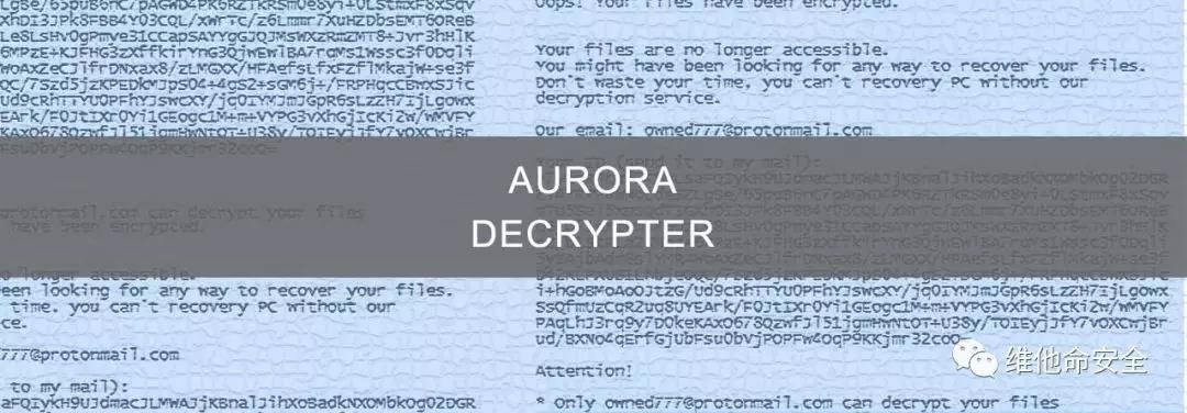 https://www.databreaches.net/bobby-yee-d-p-m-notified-24000-patients-after-ransomware-attack/5、勒索软件家族Aurora的免费解密器已被发布