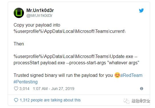 安全研究人员发现Microsoft Teams桌面应用程序中的更新机制可用于下载和执行恶意文件。同样的问题也影响了GitHub、WhatApp和UiPath的桌面版,但它们只能下载文件。该问题与使用NuGet来管理安装和更新包的开源项目Squirrel有关,研究人员发现update命令及squirrel命令可在当前用户的上下文中执行任意二进制文件,结合download参数,它还允许从远程位置以NuGet包的形式获取payload。微软表示将在未来的软件版本中修复该问题。