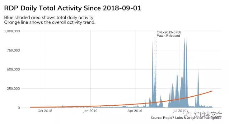 修复CVE-2019-0708漏洞具有重要性和紧迫性,建议用户不要心存侥幸。Rapid7 Labs之前曾写过自BlueKeep漏洞发布以来他们观察到的恶意RDP活动在持续上升。