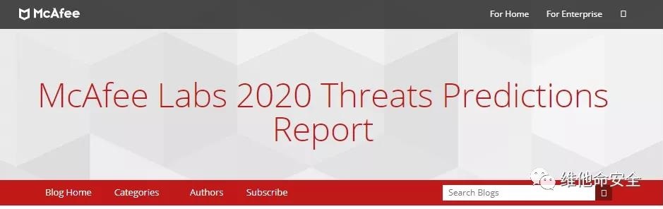 McAfee发布2020年网络威胁趋势预测报告;莫斯科城市监控系统访问权限在暗网出售