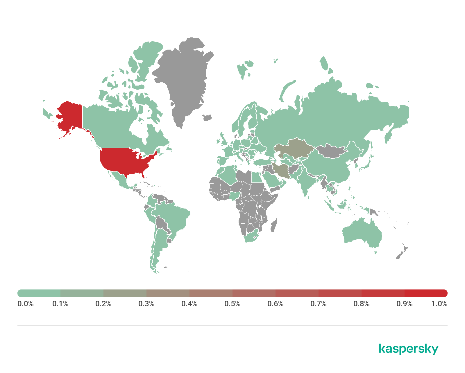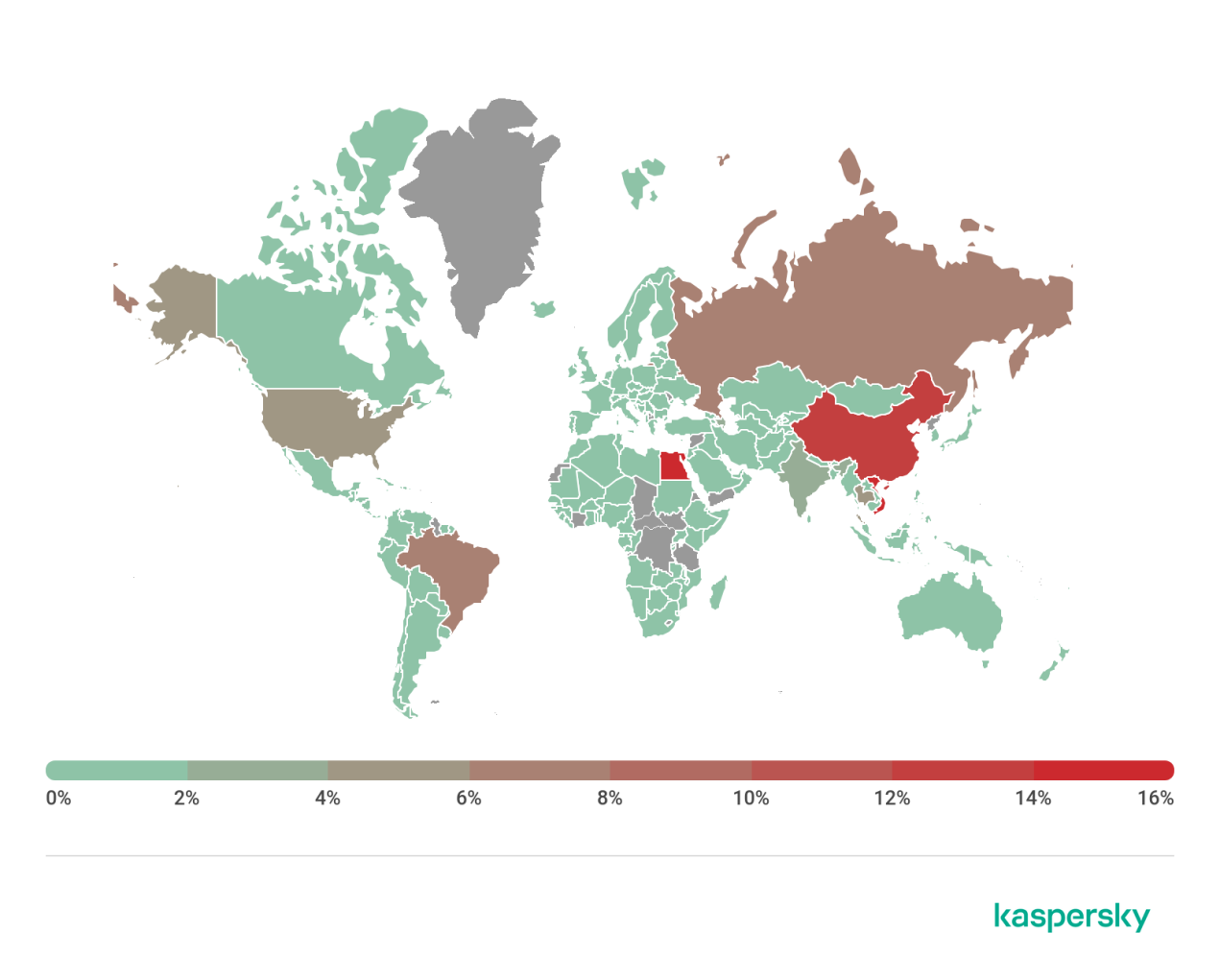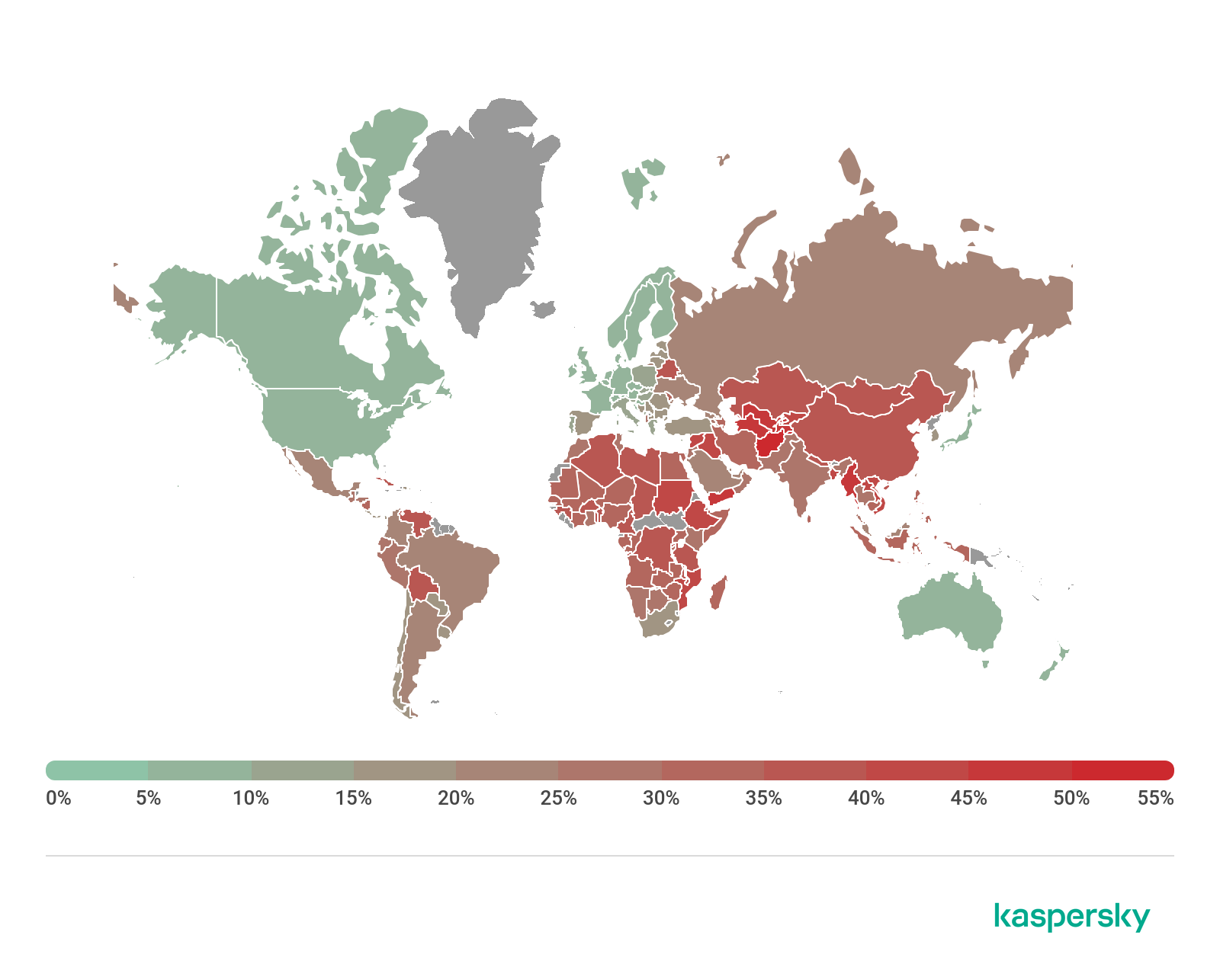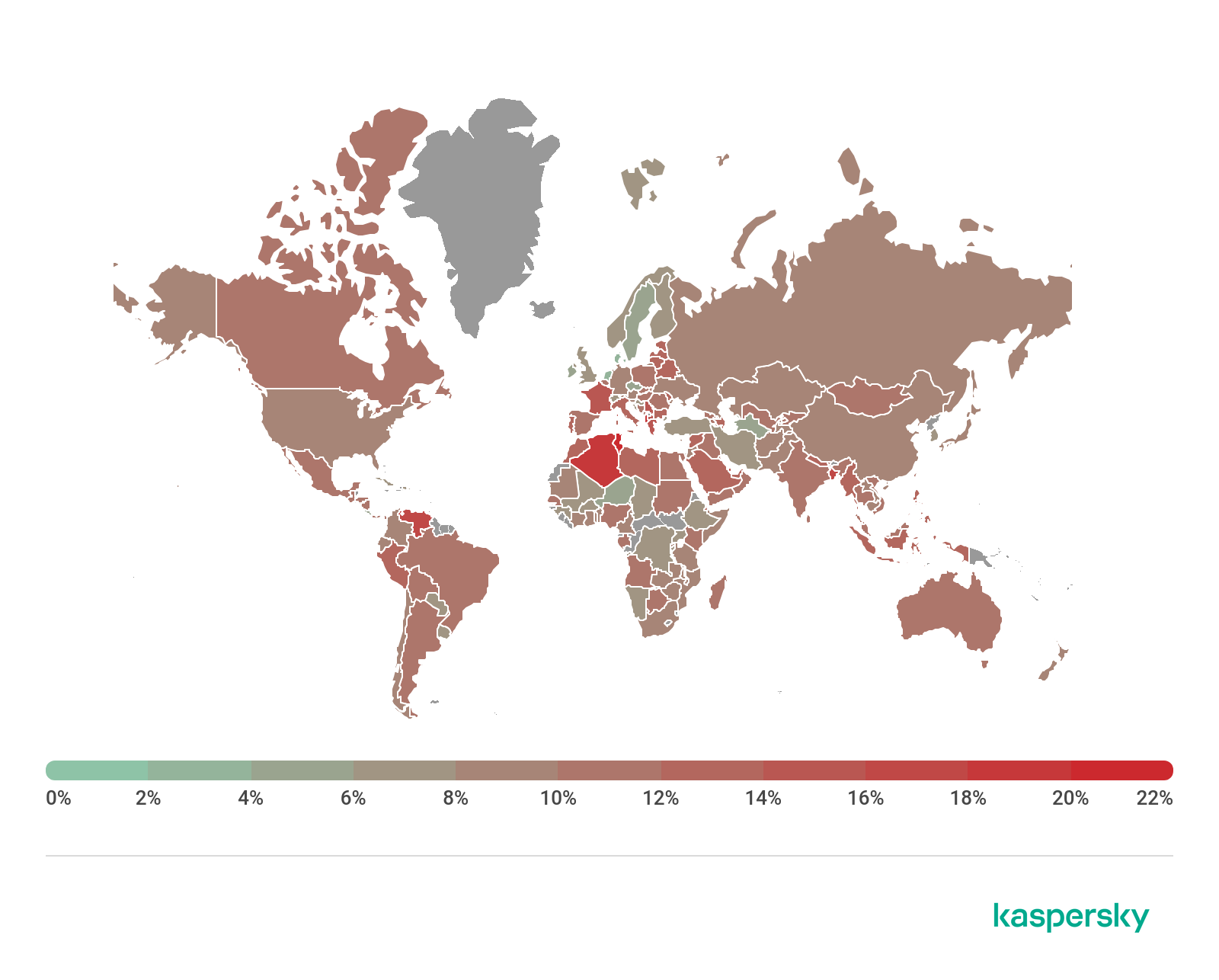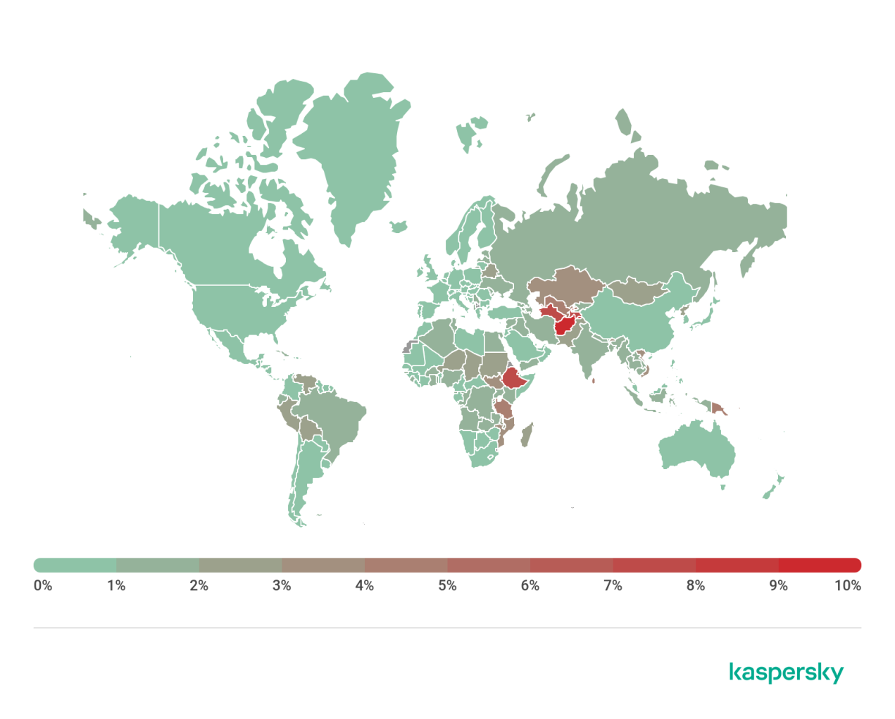 **该国家卡巴斯基用户中受恶意软件类本地威胁攻击的比例