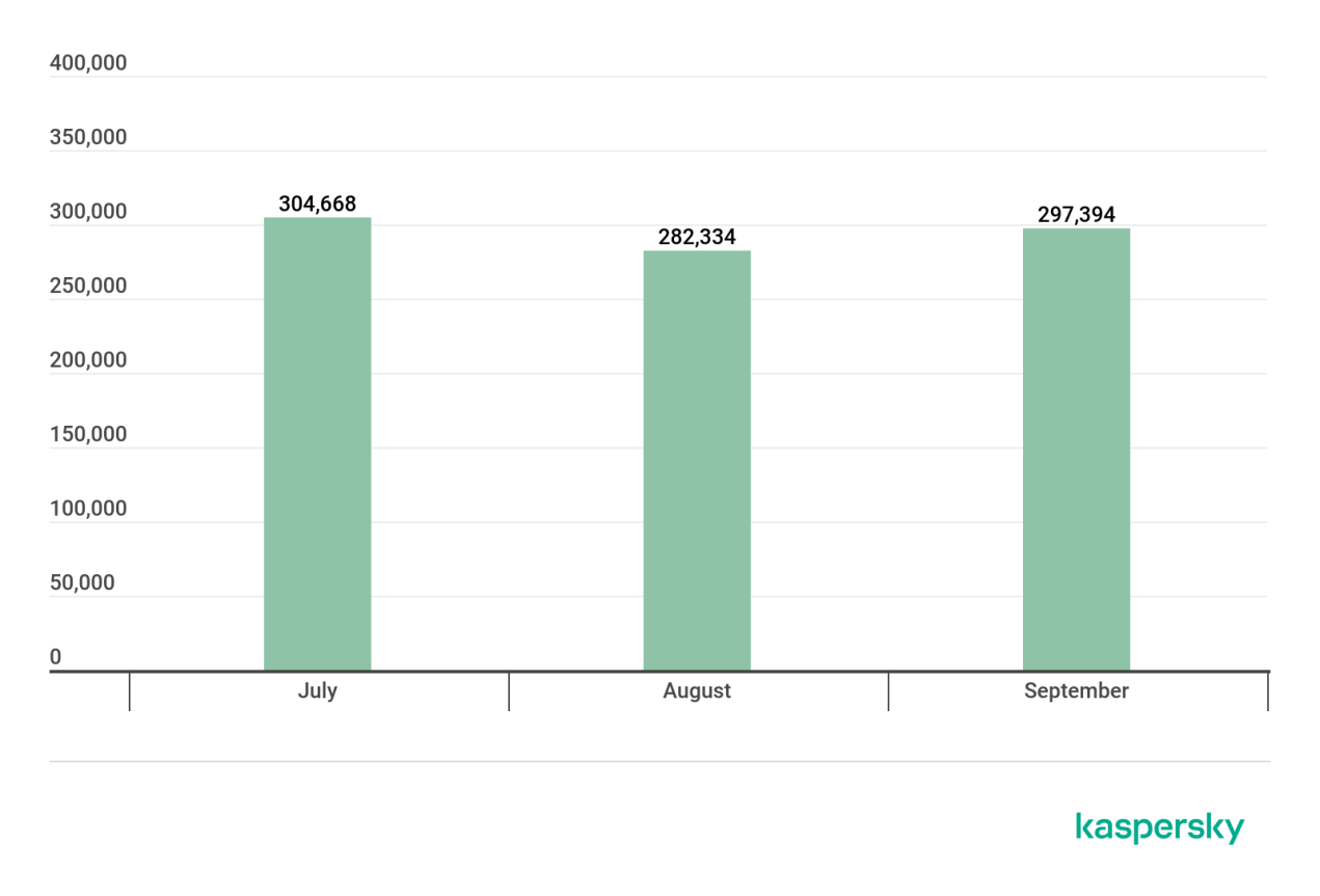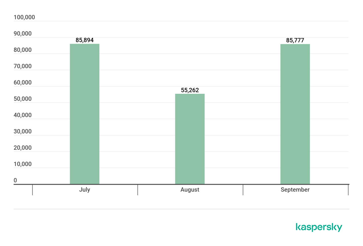 2019年第三季度,卡巴斯基共检测到870,617(87万)个恶意软件安装包。
