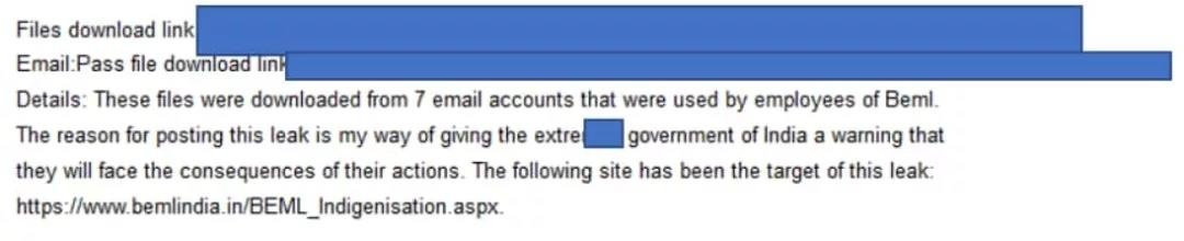 3.印度国防企业BEML遭到攻击,其敏感数据在暗网出售