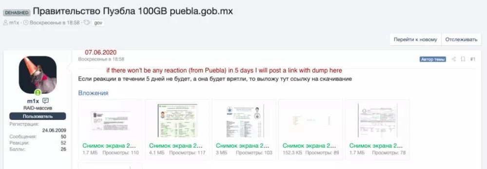 4.俄罗斯黑客m1x泄露1.4万墨西哥公民的ID信息