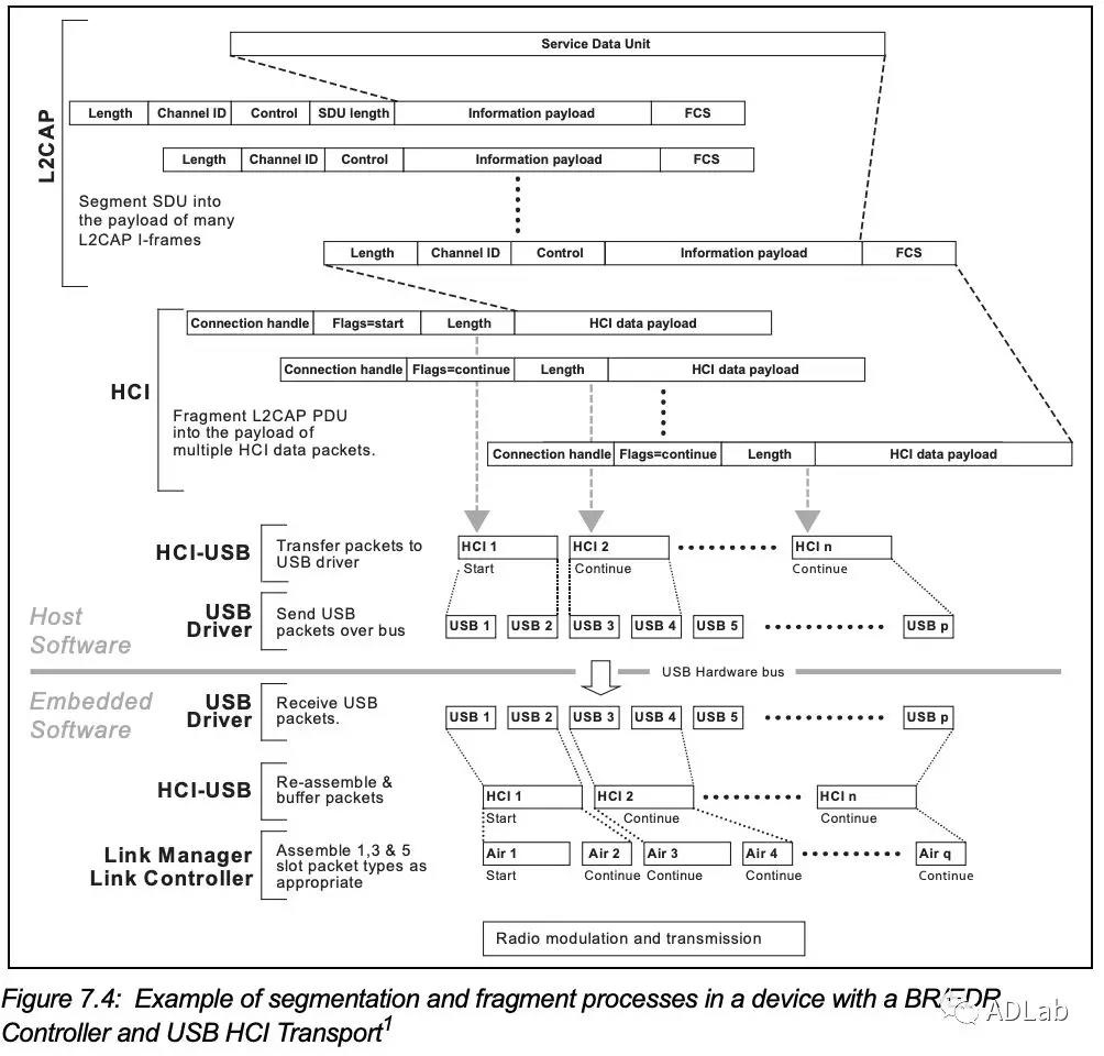 分段是将PDU分解成较小的部分,以便从L2CAP传递到较低层。重组是根据从下层传递来的片段重组PDU的过程。分段和重组可以应用于任何L2CAP PDU。