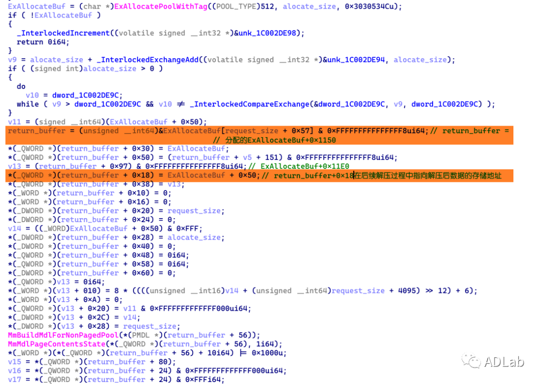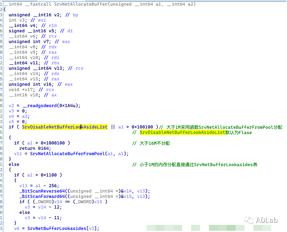 图10 SrvNetAllocateBufferFromPool函数反编译代码