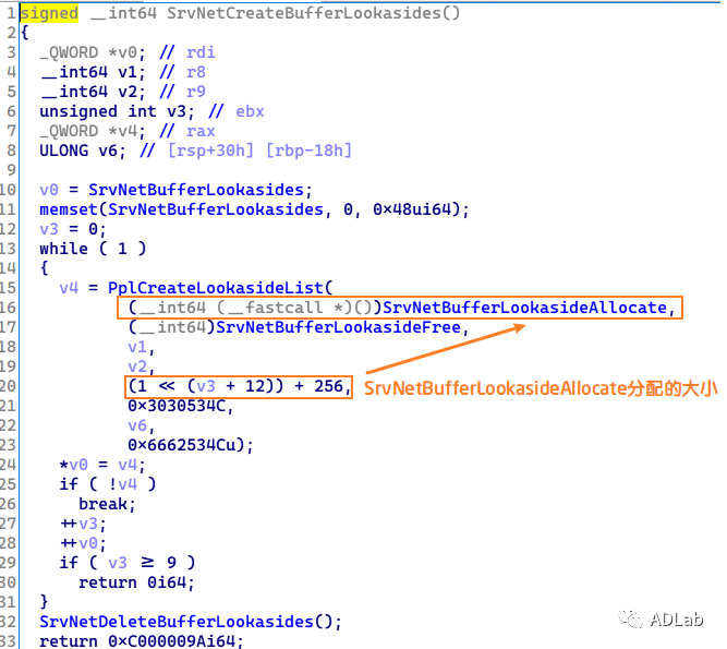 图9 SrvNetBufferLookasideAllocate反编译代码