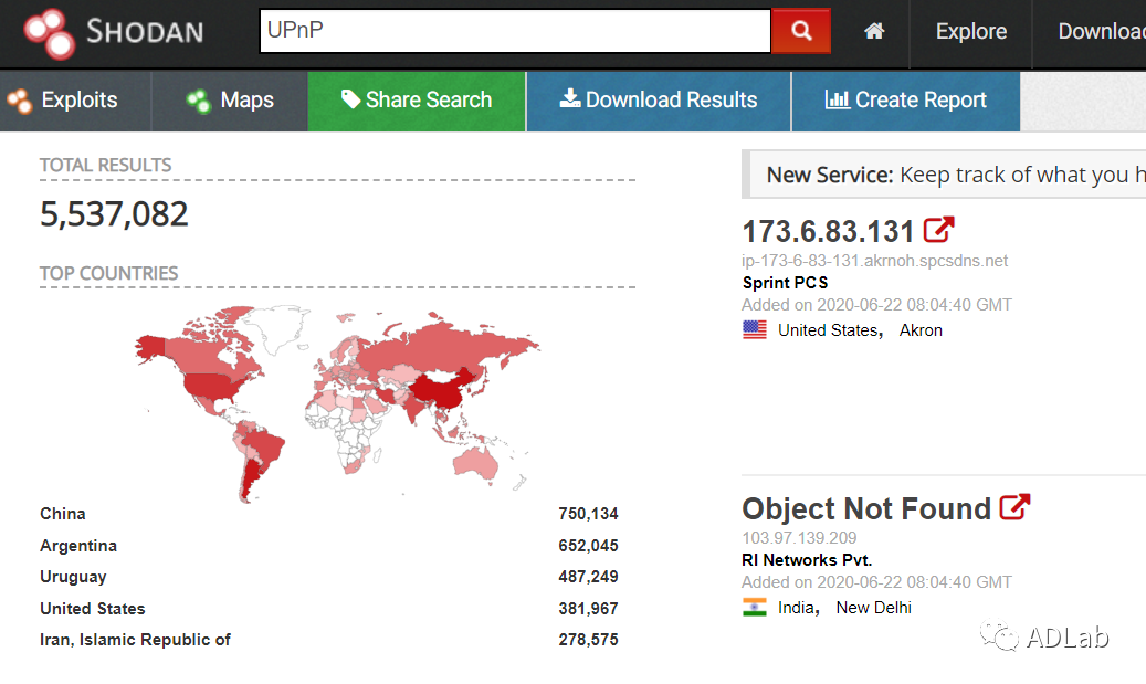 与之前的UPnP漏洞不同,CallStranger漏洞存在于协议设计中,因此该漏洞影响几乎所有支持UPnP的设备,包括Windows 10所有版本、路由器、访问接入点、打印机、游戏机、门铃对讲机、媒体应用程序和设备、摄像头、电视机等。根据SHODAN和ZoomEye的搜索结果,至少有数以百万计的在线设备受到影响。