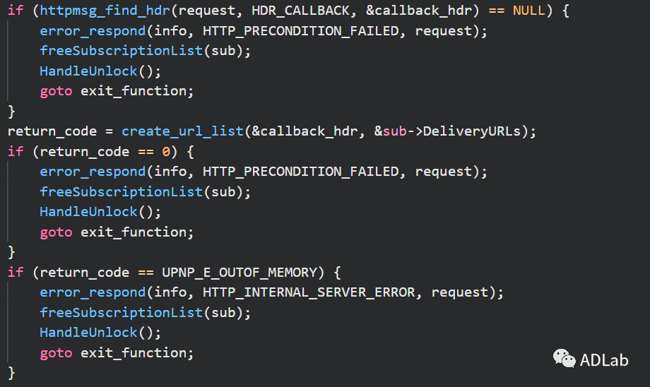 下图为Intel UPnP SDK中检查CALLBACK URL的相关代码,create_url_list函数仅仅检查了URL是否合法,并没有确定其是否合理。