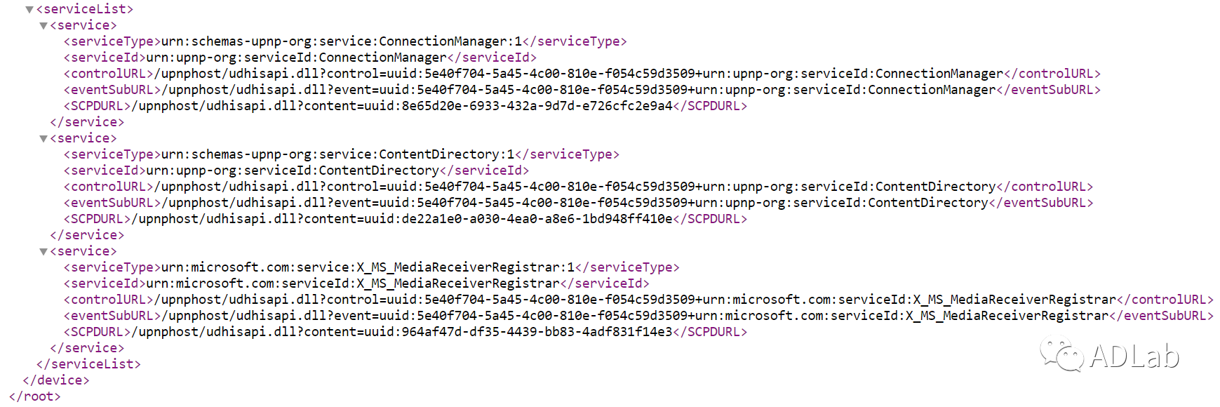 Windows Media Player在播放视频时也有相应的UPnP服务,我们获取到的UPnP服务列表如下: