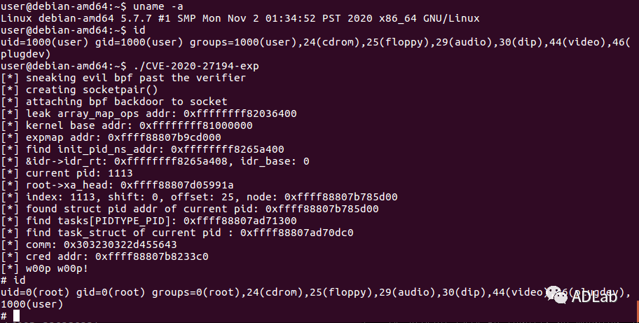 在Linux-5.7.7版本中进行漏洞利用,成功提权。
