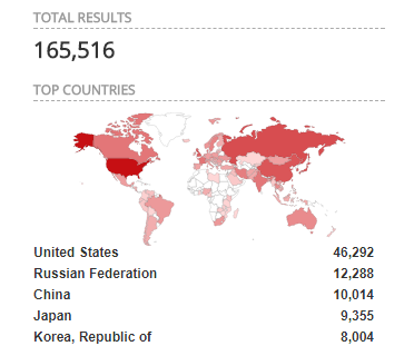 目前国际上大概有二十万受影响设备暴露在公网上:
