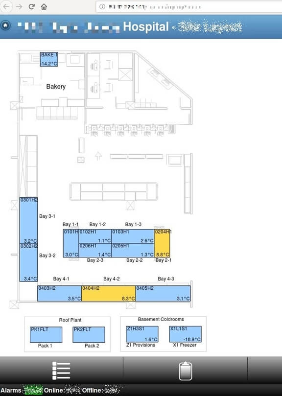 比如,Safety Detective研究实验室的安全研究员仅通过谷歌搜索就在很短的时间里找到了分别属于德国一家制冷工厂和英国一家医院的制冷系统对应的网址。以下是Safety Detective研究实验室的安全研究员获取到的英国这家医院的网络布局图: