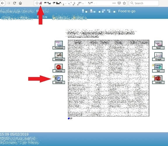 下面是该超市其中一台冷藏柜的详细数据。值得注意的是,从网址栏我们可以看出,这个页面是通过不安全的网址访问的。想要控制这台冷藏柜,你只需单击一个按钮并输入默认用户名和密码即可。