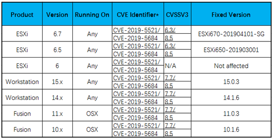 Vmware ESXi、Workstation和Fusion中存在如下漏洞。利用这些漏洞需要攻击者访问启用了3D图形的虚拟机。默认情况下,它不在ESXi上启用,默认情况下在Workstation和Fusion上启用。