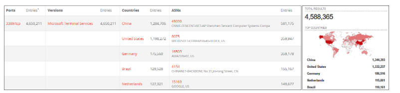 根据BinaryEdge和Shodan的统计,目前超过450万台设备将RDP公开到Internet。