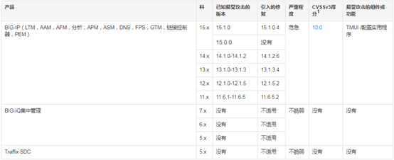 F5 BIG-IP15.1.0、15.0.0、14.1.0-14.1.2、13.1.0-13.1.3、12.1.0-12.1.5、11.6.1-11.6.5 |