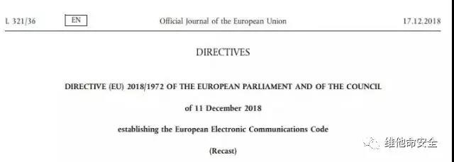 2、欧洲议会和理事会发布《欧盟电子通信规范(EECC)》