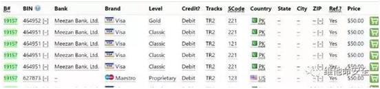 Group-IB研究人员发现69189张巴基斯坦银行卡的信息在暗网上出售。这批数据分为两个数据库,总售价约为350万美元。第一个数据库是1月底在Joker's Stash上发布的,共包括1535张银行卡信息,其中96%的银行卡都与Meezan Bank有关。第二个数据库是1月30日在Joker's Stash上发布的,包括67654张银行卡信息,同样有96%的银行卡与Meezan Bank有关。这些数据可能表明了该地区针对金融机构的攻击者的活动。