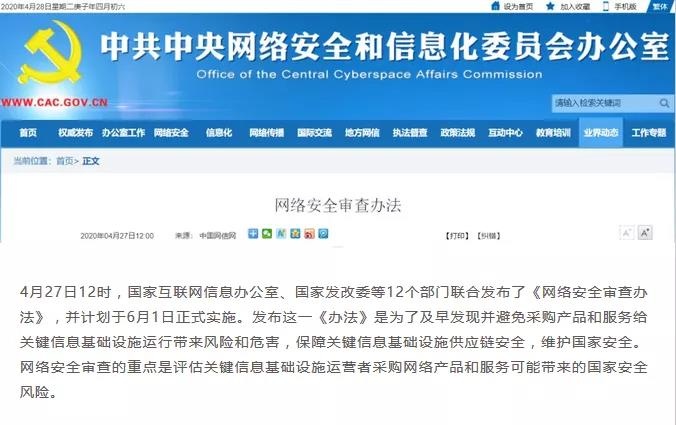 2、网信办等12个部门联合发布《网络安全审查办法》