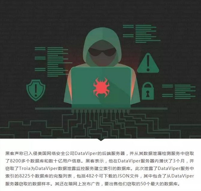 2、黑客入侵安全公司DataViper服务器窃取数十亿用户信息