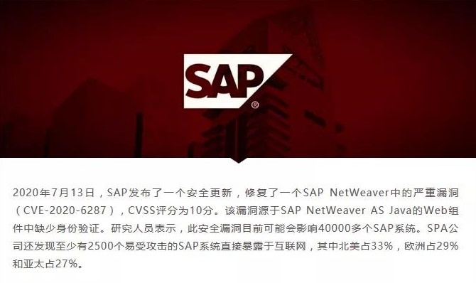 3、SAP发布安全更新,修复NetWeaver中的严重漏洞