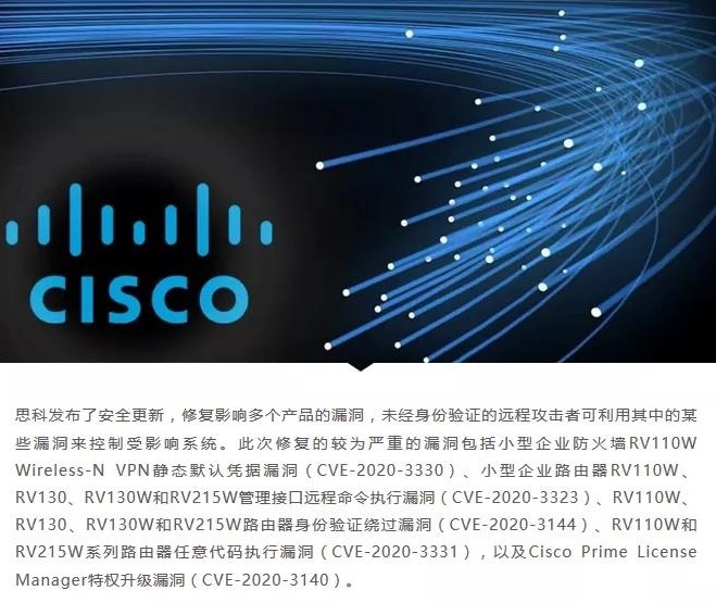 5、思科发布多种产品的安全更新,修复代码执行漏洞