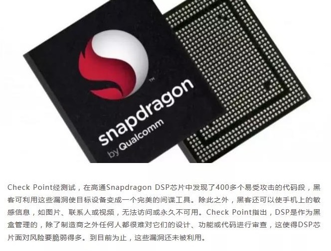 2、Check Point发现高通的Snapdragon芯片存在400多个漏洞