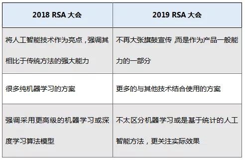 2018年与2019年RSA大会参展商对人工智能技术宣传的对比