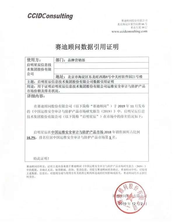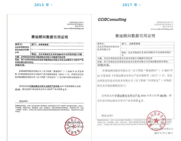 权威调研机构赛迪顾问股份有限公司发布的《中国运维安全审计与防护产品市场研究报告(2019)》: