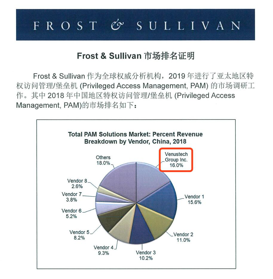 不仅是CCID,Frost & Sullivan2019年首次对中国堡垒机市场进行了市场调研工作,发布了中国地区堡垒机的市场排名报告。启明星辰集团市场占有率第一,领跑中国堡垒机市场!