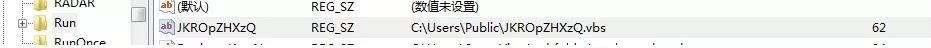 该可执行文件运行后,会在%User\Public%目录下释放恶意的VBS脚本文件并将该目录添加到注册表的Run启动项中,以实现其持久性。接着再将内存中解密出的的PE文件注入到系统文件“Regasm.exe”中。