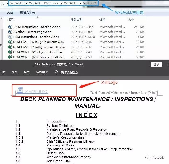 我们注意到,W-EAGLE目录下保存着一个名为“W-EAGLE PMS Deck.zip”的压缩包。解压并打开某DOC文档,发现这是一个带着公司logo的西班牙语文件,标题在谷歌翻译为“甲板计划的维护/检查手册”。