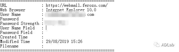 我们将一个以“Recovery”开头的html文件使用IE浏览器打开,能够看到木马具体收集了哪些信息。其中包括受害者的计算机用户名、主机信息、系统名称、CPU信息、内存信息、IP地址以及Chrome浏览器凭据信息等。