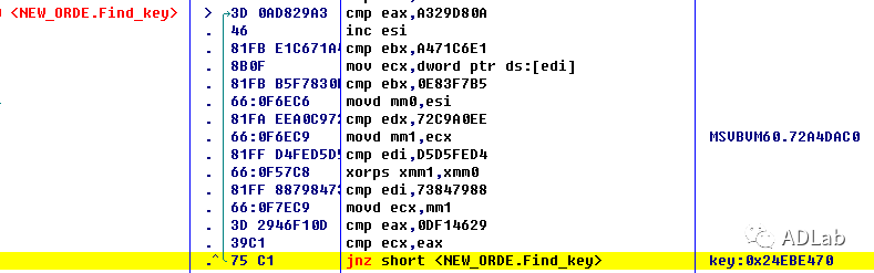 接着,恶意代码再使用自定义解密函数对下载的payload进行异或解密。其密钥储存在shellcode代码0x2032偏移处,密钥长度为0x214。解密函数内容如图4-39所示。