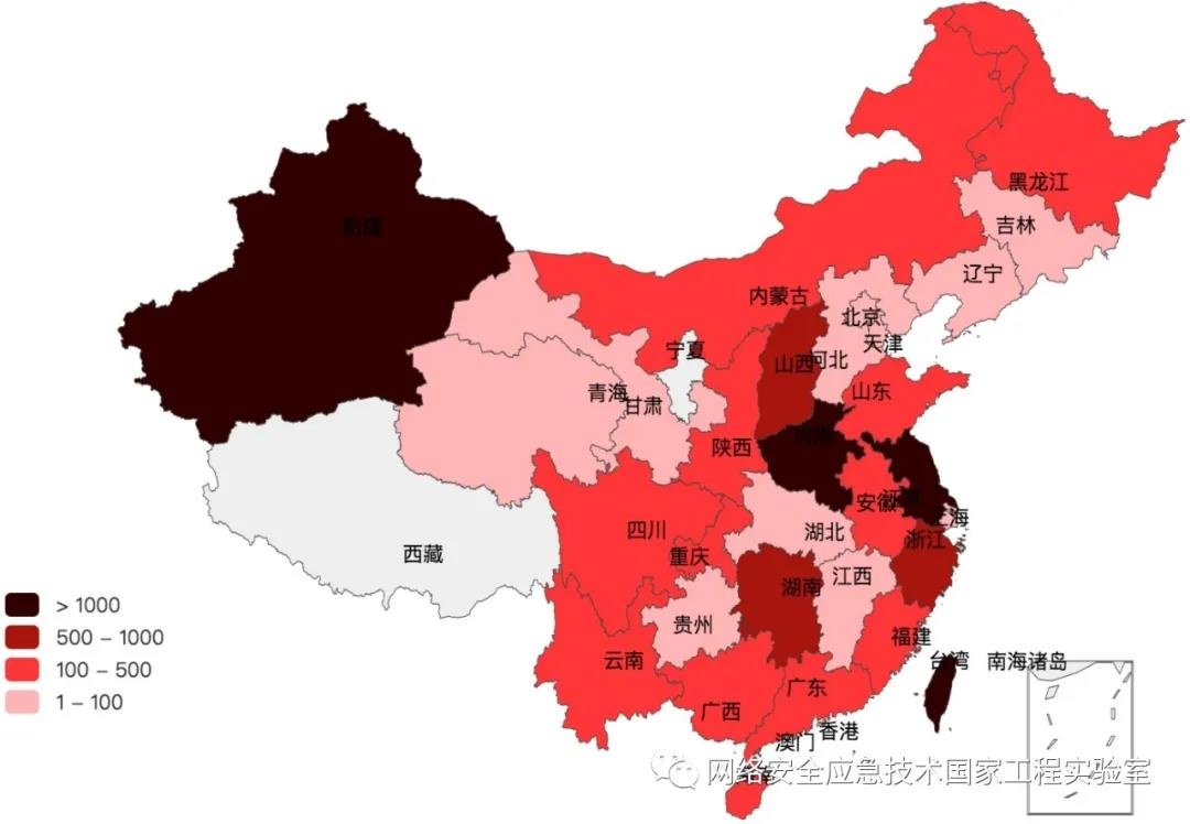 图5:境内受攻击IP位置分布图