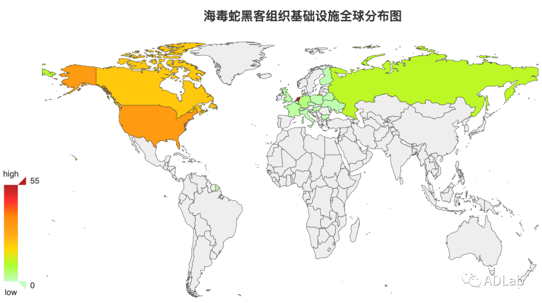图9 海毒蛇黑客组织基础设施全球分布图