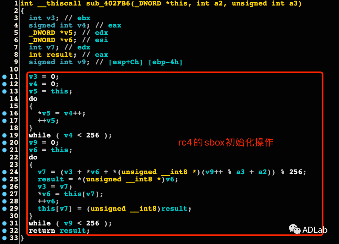 图31 RC4算法的sbox初始化操作代码