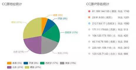 DDOS攻击以境外IP地址居多,其中79%的攻击行为来自境外。(德国27%,美国19%,西班牙17%)
