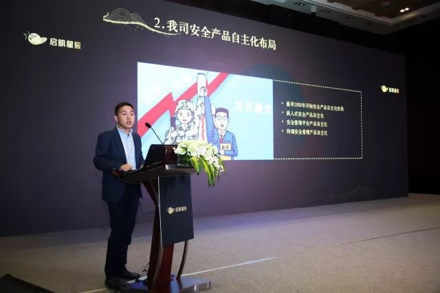 ●“在当前形势下,国产化话题再次警示国人,国产化自主可控刻不容缓,发展自主可控的核心安全技术才能打破垄断限制。启明星辰一直秉持着自主创新理念,以创立民族信息安全自主品牌为己任,从2008年起开始网络安全产品自主化的研制工作。启明星辰和龙芯、申威、中标麒麟、银河麒麟等形成良好的合作关系。”——启明星辰MDS副总经理朱智勇