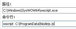 二、除发现svchost进程在进行异常操作外,wscript.exe也在持续运行,通过查看该程序所调用的命令行,发现其执行过一个名为Nodejs.js的脚本,而该js文件已被删除。